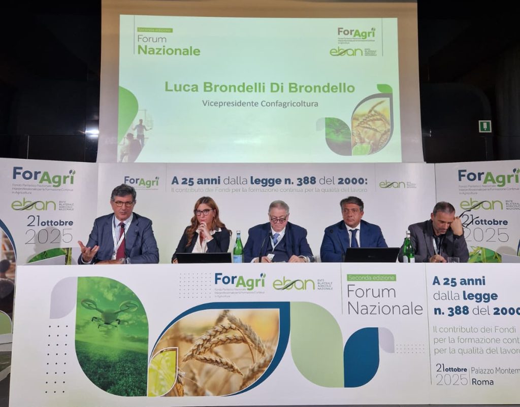 Un momento di confronto e riflessione di alto profilo a 25 anni dalla legge istitutiva dei Fondi interprofessionali, in cui ha preso parte tutto il team Enapra. Al centro del dibattito, il ruolo della formazione continua come leva per innovazione, competitività e sostenibilità nel settore agroalimentare. Il Presidente Luca Brondelli di Brondello, in qualità di Vicepresidente di Confagricoltura e Presidente di Enapra, ha partecipato alla tavola rotonda “Governare il cambiamento: il ruolo delle istituzioni nella formazione agroalimentare di qualità”, contribuendo alla riflessione sul futuro del lavoro e delle competenze nel comparto. È stata l’occasione per ragionare insieme su come sta cambiando il lavoro nel settore agroalimentare e sul ruolo che la formazione può avere nel guidare questa evoluzione. Un grazie a Vincenzo Conso e Michele Distefano, presidente e direttore di Foragri, per aver promosso questo importante momento di approfondimento e dialogo tra imprese, lavoratori e istituzioni. Ad aprire i lavori, insieme al presidente Conso, anche il direttore generale di Confagricoltura e Presidente EBAN Roberto Caponi.