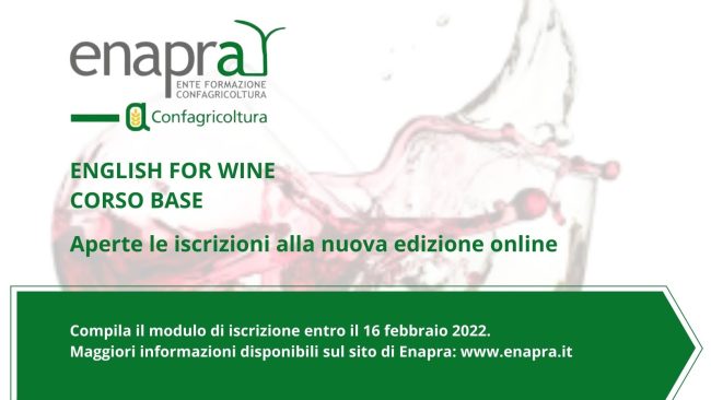 Al via le iscrizioni alla nuova edizione di ENGLISH FOR WINE, dedicata ad utenti con un livello BASE di competenza della lingua. I destinatari del corso acquisiranno una maggiore padronanza del vocabolario tecnico per l’industria vitivinicola, sia relativamente all’ascolto che alla lettura, scrittura e comunicazione verbale in lingua inglese Compila il Modulo di adesione: riceverai…