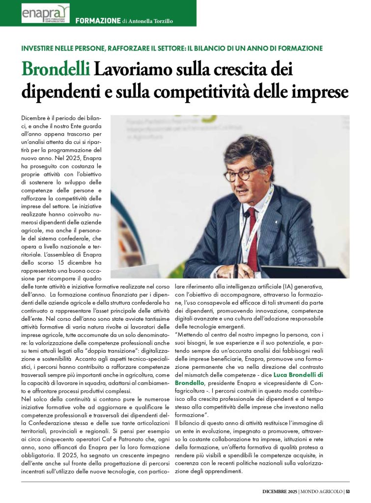 👉 Per approfondire, è online il nuovo numero di Mondo Agricolo con l’inserto Enapra, a firma di Antonella Torzillo.